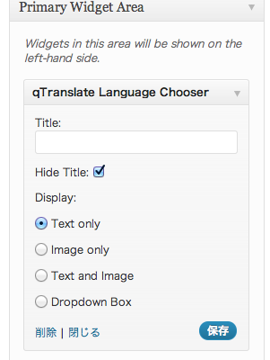 言語の切り替えは、まずウィジェットの設置を行い、スタイルを好きにしたい場合は、テキスト表示を選び、CSSで好きなデザインに変更します。